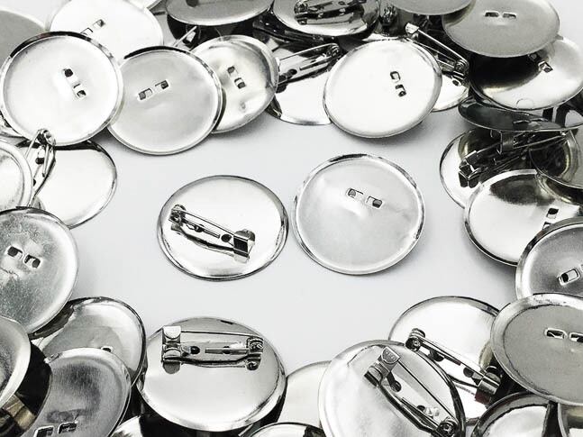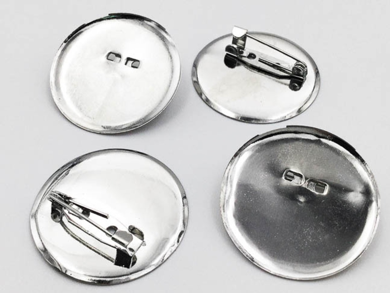 送料無料 ブローチピン 30mm ベース 台座付き 50個 シルバー 台座30mm バッジピン コサージュ ピン 金具 ブローチ アクセサリー パーツ ハンドメイド 素材 (AP0458)