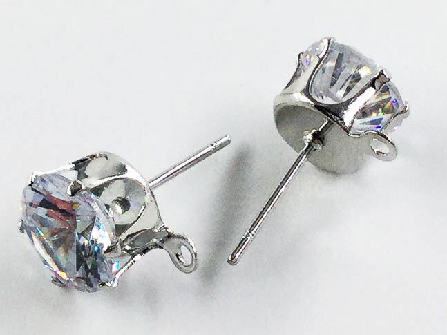 送料無料 ピアス パーツ シルバー 40個 8mm ラインストーン 付き ラインストーンピアス ピアス 金具 アクセサリー パーツ (AP0469)