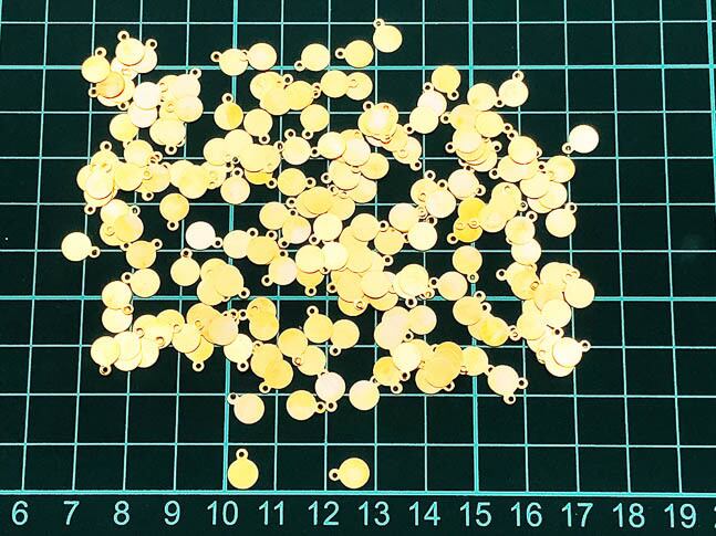 送料無料 メタル パーツ プレート 丸 6mm ゴールド 200枚 カン付き チャーム ピアス イヤリング パーツ (AP0503)