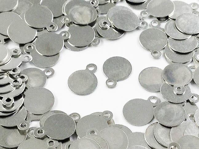 送料無料 メタル パーツ プレート 丸 6mm シルバー 200枚 カン付き チャーム ピアス イヤリング パーツ (AP0505)