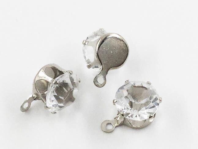 送料無料 台座付き ガラスストーン 8mm 50個 カン付き シルバー 貼付台座 チャーム ピアス イヤリング アクセサリー パーツ (AP0549)