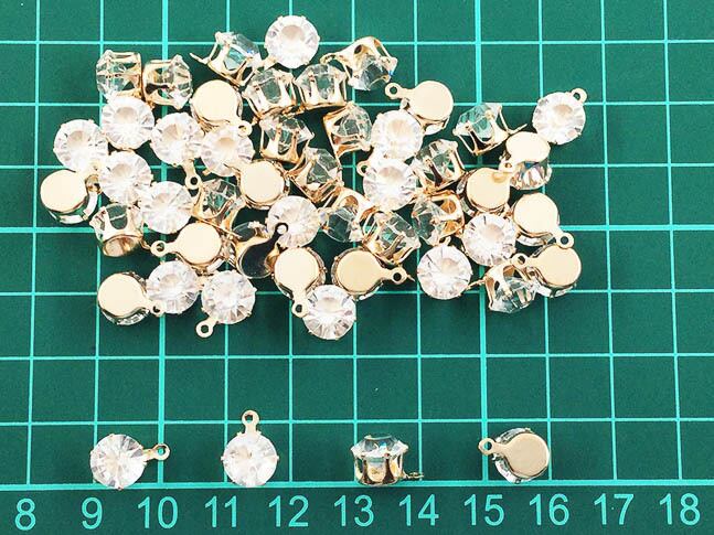 送料無料 台座付き ガラスストーン 8mm 50個 カン付き ゴールド 貼付台座 チャーム ピアス イヤリング アクセサリー パーツ (AP0550)
