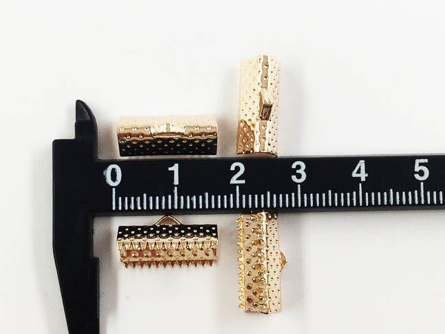 送料無料 ワニグチ 金具 50個 リボン 留め 紐 留め 16mm ゴールド KC金 ワニ口 ワニカン エンド パーツ アクセサリー 金具 (AP0565)