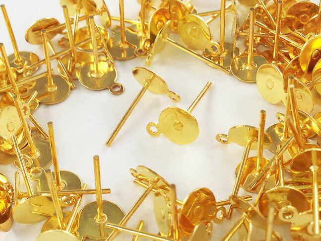 送料無料 ピアスパーツ ゴールド 100個 6mm 台座 カン付き 平皿 丸皿 ピアス 金具 アクセサリー パーツ (AP0611)