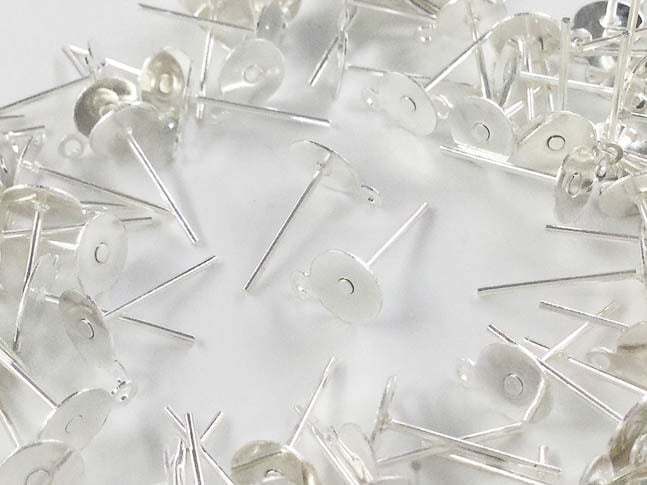 送料無料 ピアスパーツ シルバー 白銀 100個 6mm 台座 カン付き 平皿 丸皿 ピアス 金具 アクセサリー パーツ (AP0612)