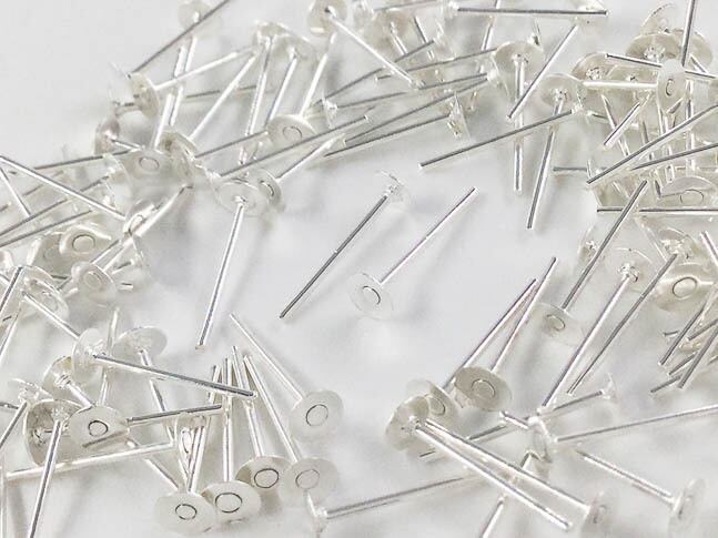 送料無料 ピアスパーツ シルバー 丸皿 4mm 平皿 白銀 100個 セット ハンドメイド ピアス金具 台座付き アクセサリーパーツ (AP0618)