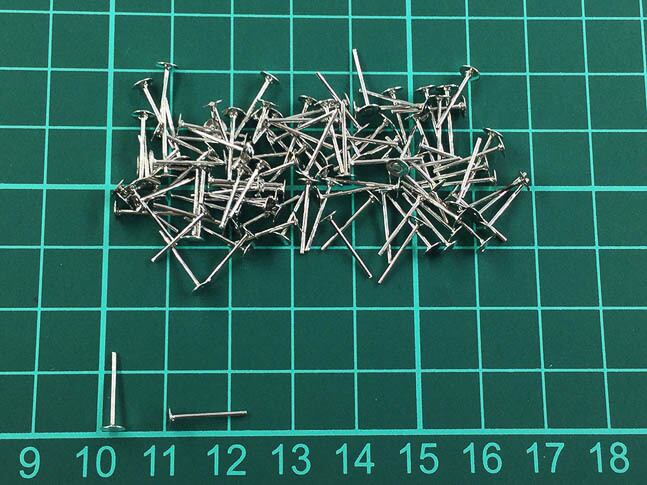 1個サイズ:台座約4mm 線長約11mm 線径約1mm、商品画像にてノギス計測・緑ボードでの計測画像参照可能です(緑ボードは1マス1cmです)