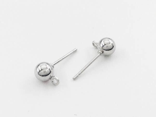 送料無料 ピアス パーツ シルバー 40個 5mm 丸玉 カン 付き ポストピアス アクセサリー ハンドメイド 金具 (AP0640)