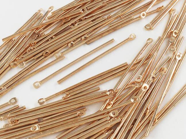 送料無料 メタルスティック 35mm 100個 カン付き ゴールド KC金 チャーム ピアスパーツ イヤリングパーツ (AP0653)