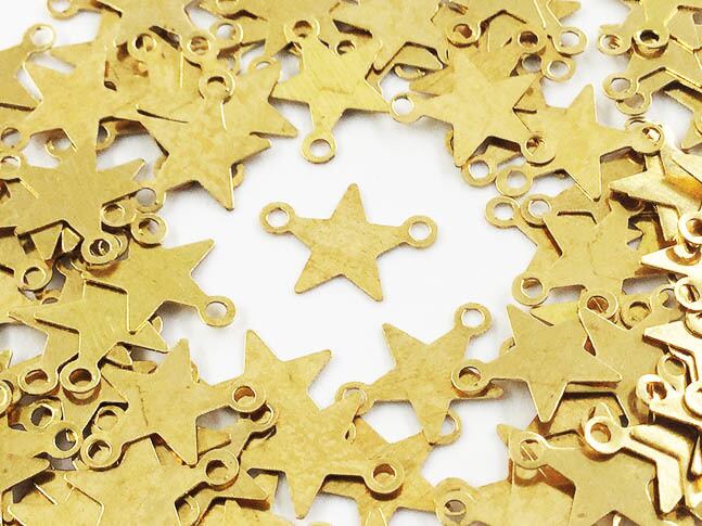 送料無料 メタル パーツ プレート 星 スター ゴールド 100枚 カン付き チャーム ピアス イヤリング パーツ (AP0683)