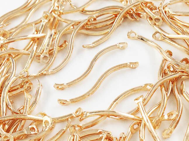 送料無料 メタルスティック 20mm S型 100個 両カン付き ゴールド KC金 ピアスパーツ イヤリングパーツ (AP0706)
