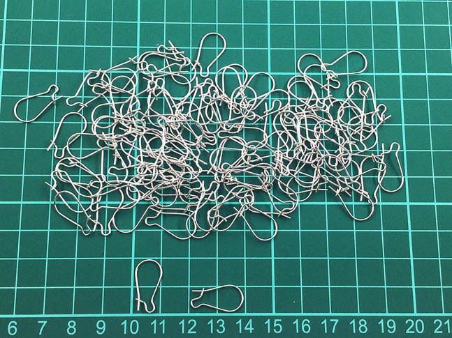 1個サイズ:約18mmx約10mm 線径約1mm、商品画像にてノギス計測・緑ボードでの計測画像参照可能です(緑ボードは1マス1cmです)