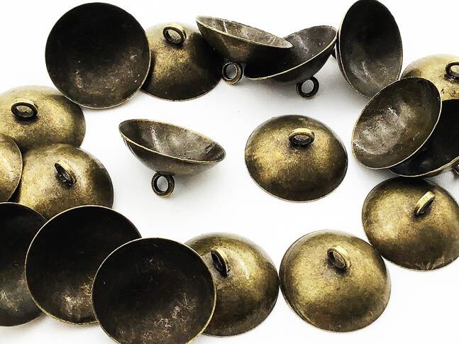 送料無料 ガラスドーム キャップ アンティーク 15mm 20個 カン付き 金古美 ビーズキャップ 金具 手芸 アクセサリー金具 アクセサリーパーツ (AP0794)