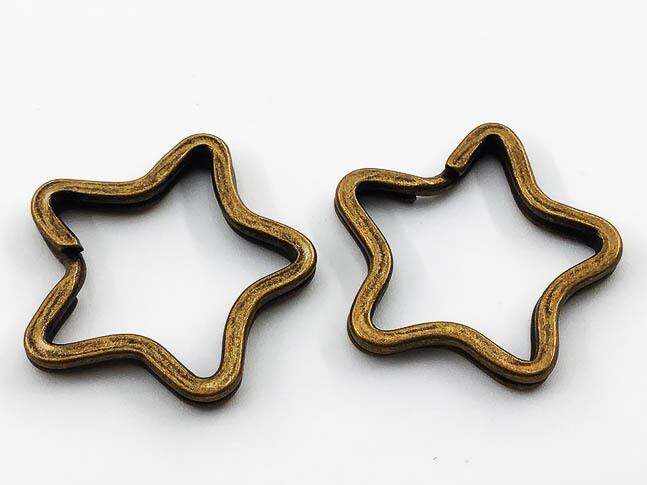 送料無料 二重リング 平 スター 星 10個 金古美 アンティークゴールド キーホルダー 金具 アクセサリー パーツ (AP0804)