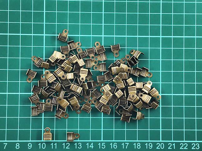送料無料 紐止め金具 カシメ 金古美 アンティークゴールド 100個 幅7mm エンドパーツ 留め金具 アクセサリー パーツ (AP0842)