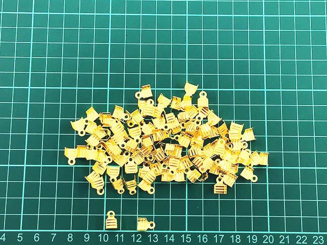 送料無料 紐止め金具 カシメ ゴールド 100個 幅7mm エンドパーツ 留め金具 アクセサリー パーツ (AP0843)