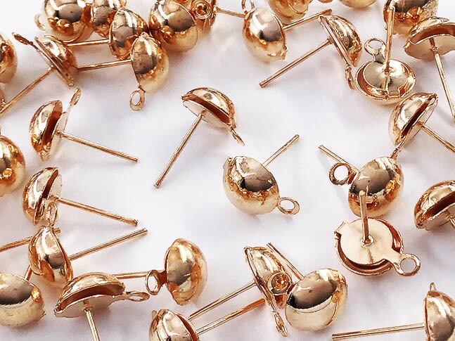 送料無料 ピアス パーツ セット ゴールド KC金 40個 丸玉 半円 カン付き 円径8mm アクセサリー パーツ 金具 (AP0852)