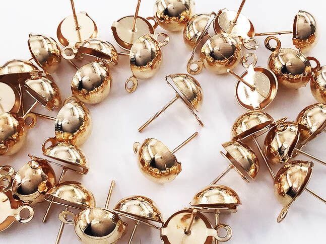 送料無料 ピアス パーツ セット ゴールド KC金 40個 丸玉 半円 カン付き 円径10mm アクセサリー パーツ 金具 (AP0858)