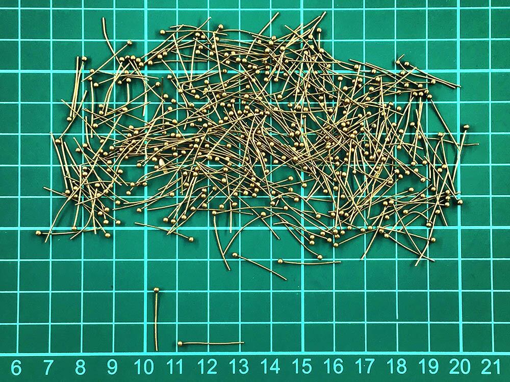 1個サイズ:全長約20mm 線径約0.5mm 球径役2mm(仕様用途は曲げたり切ったり加工して使用するものです★銅製で線径約0.5mmの為とても曲がりやすい素材です、加工しやすい様に曲がりやすくなっております、検品時著しく曲がりのある物は出来る限り取り除いてはおりますが当然有る程度の曲がりがある物も有る為多めに入れておりますので予めご理解御了承下さい。こちらのパーツの使用用途を理解していない方や神経質な方は購入をお勧めしません。事前のトラブル防止の為の一言となりますのでご理解下さい。)(商品画像に簡易計測画像御座います、簡易ですので誤差は御座いますのでご了承下さい。)