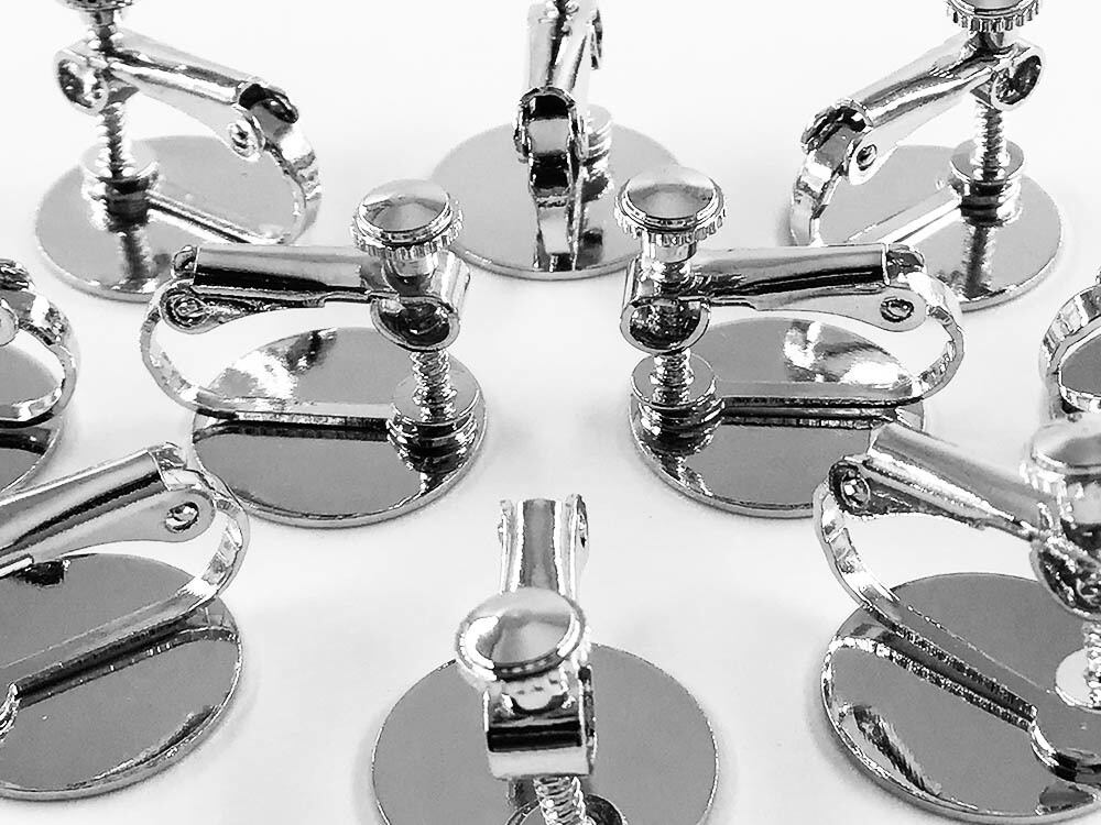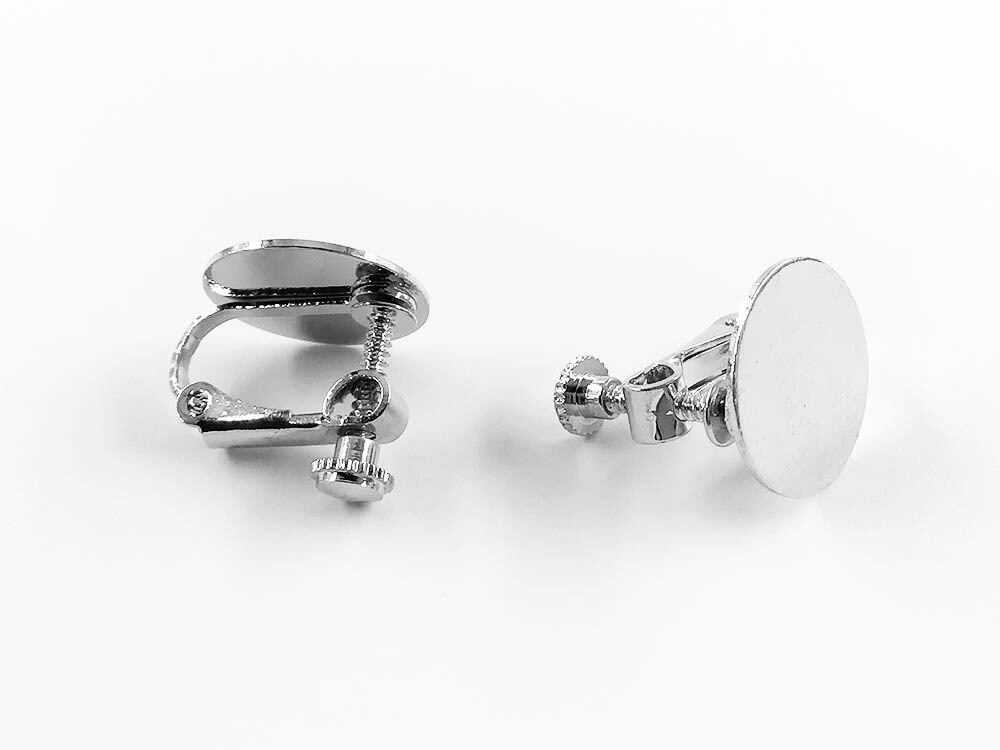 送料無料 イヤリング パーツ シルバー 丸皿 14mm大台座付き 10個 ネジバネ式 イヤリング 金具 AP1051