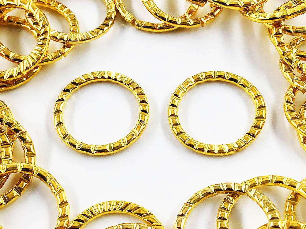 送料無料 デザイン丸カン ゴールド 18mm 大きめ 幅広厚み有 50個 フレームパーツ 丸 ハンドメイド 金具 アクセサリー ラウンド 手芸 AP1089
