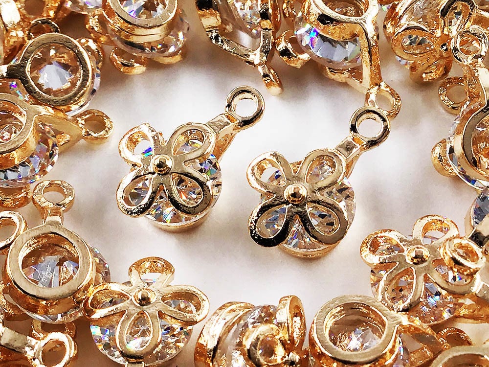 送料無料 チャーム 50個 花 フラワー ゴールド アクセサリーパーツ ネックレス ピアス イヤリング 素材 AP1149