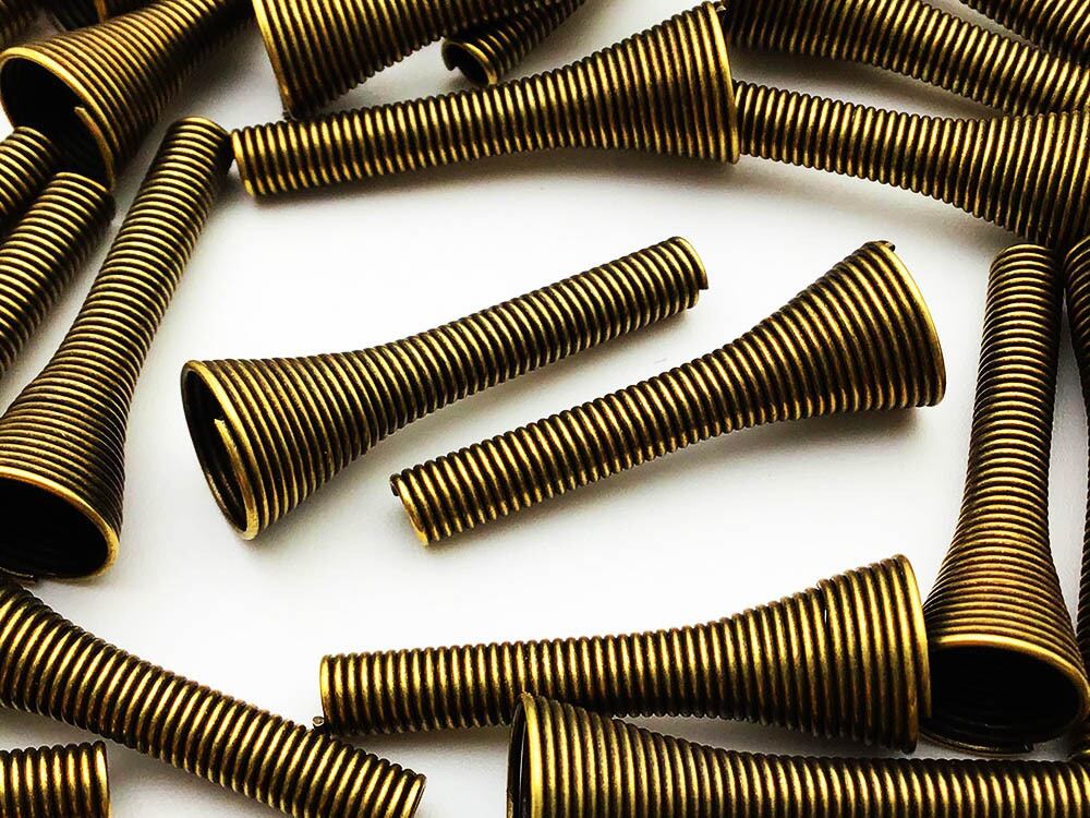 送料無料 ビーズキャップ 等に カップ径9mm 全長27mm 金古美 アンティークゴールド 40個 スペーサー コイル 貫通 キャップ アクセサリー 金具 AP0911