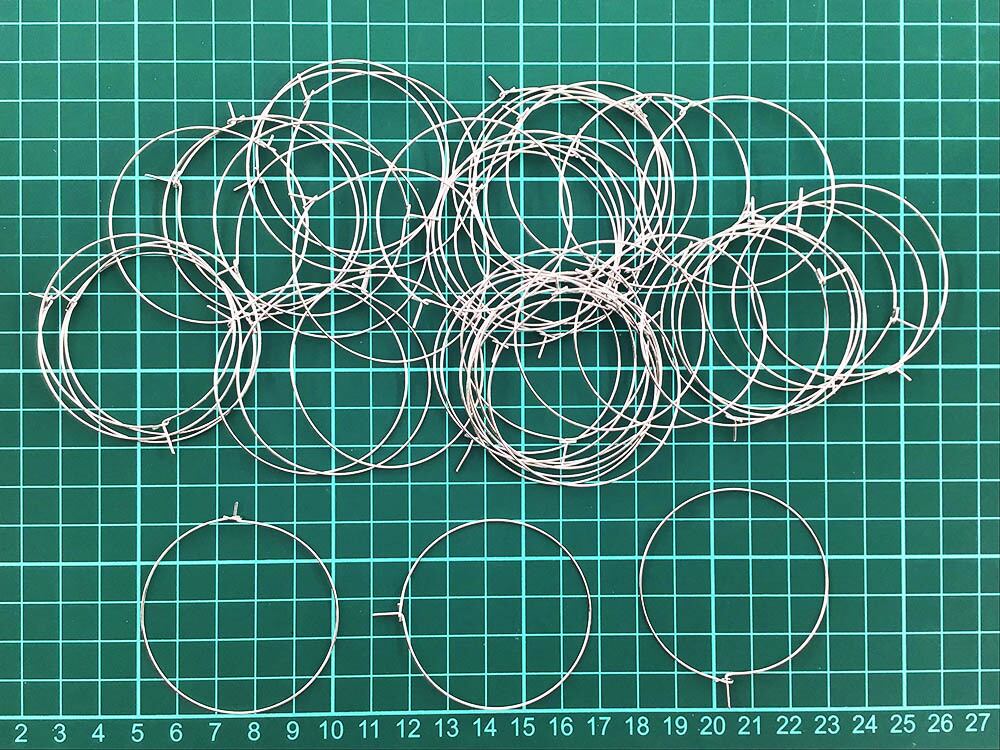 1個サイズ:約50mm 線径約1mm(商品画像に簡易計測画像御座います、簡易ですので誤差は御座いますのでご了承下さい。)