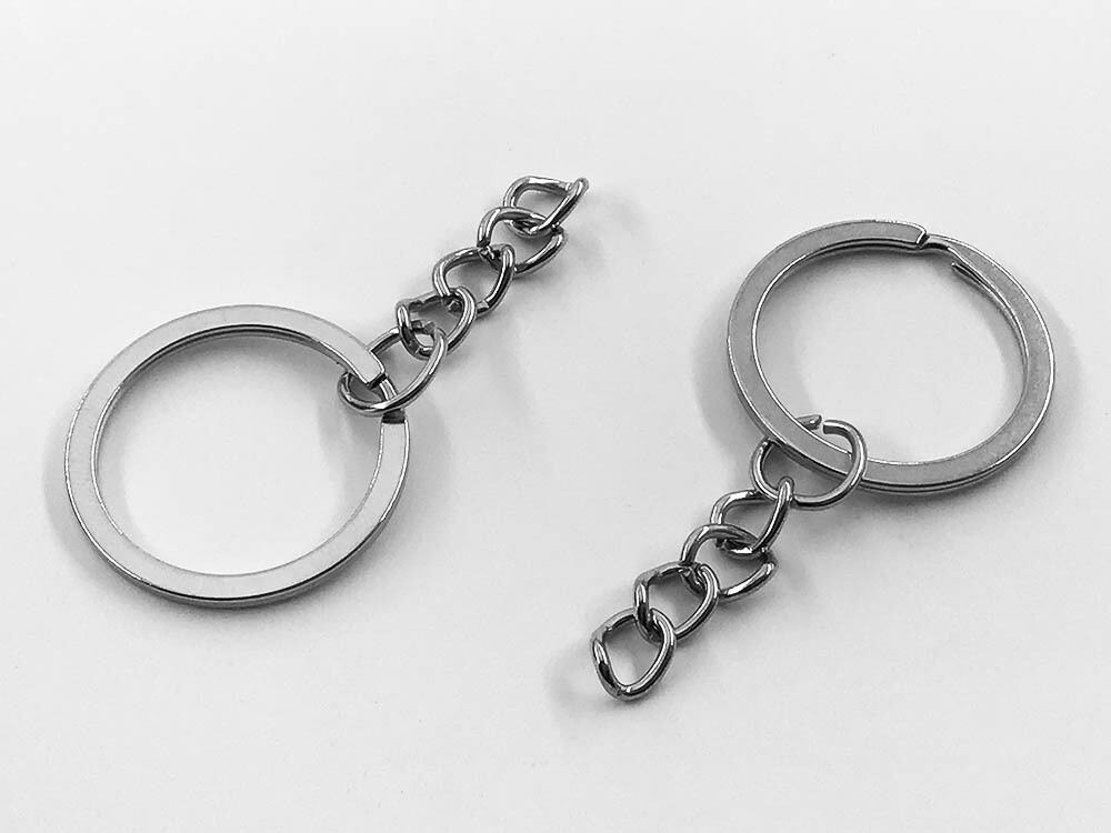 送料無料 平キーリング 25mm シルバー 50個 丸カン チェーン付き 銀色 二重リング ナスカン キーホルダーパーツ ストラップパーツ AP0978