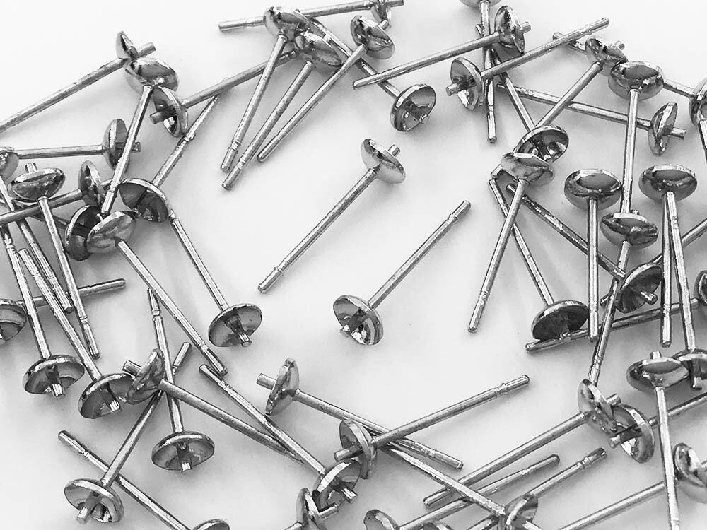 ピアスパーツ シルバー 丸皿 4mm お椀型 台座付き 固定ピン付き