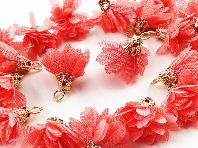送料無料 フラワー タッセル ピンク 20個 全長約18mm チャーム パーツ ピアス イヤリング アクセサリー パーツ AP1165