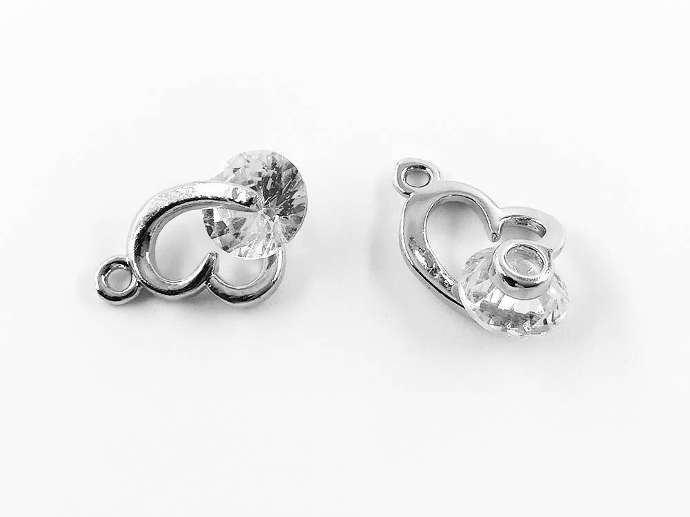 送料無料 キュービックジルコニア チャーム ハート 大きめ シルバー 10個 アクセサリーパーツ ネックレス ピアス イヤリング 素材 AP1195