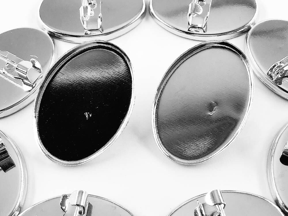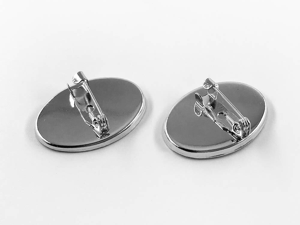 送料無料 ブローチピン ミール皿 オーバル 台座付き 20個 シルバー ミール皿【内径25mmx18mm】 バッジピン コサージュ 金具 アクセサリーパーツ AP1235