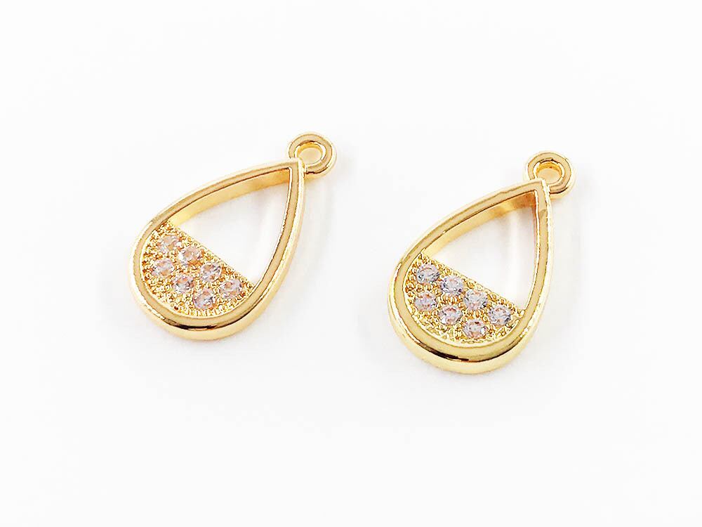 送料無料 キュービックジルコニア チャーム しずく ドロップ ゴールド 10個 アクセサリーパーツ ネックレス ピアス イヤリング 素材 AP1241