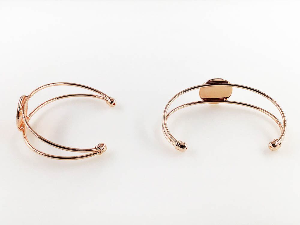 送料無料 バングル ブレスレット パーツ 4個 ピンクゴールド ミール皿台座付き サイズフリー アクセサリー パーツ 金具AP1283