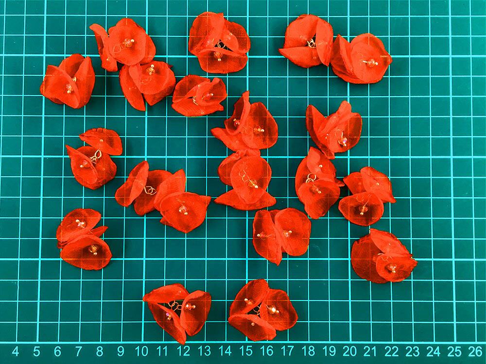 送料無料 フラワー タッセル レッド 20個 3連 1個径約20mm チャーム パーツ ピアス イヤリング アクセサリー パーツAP1301