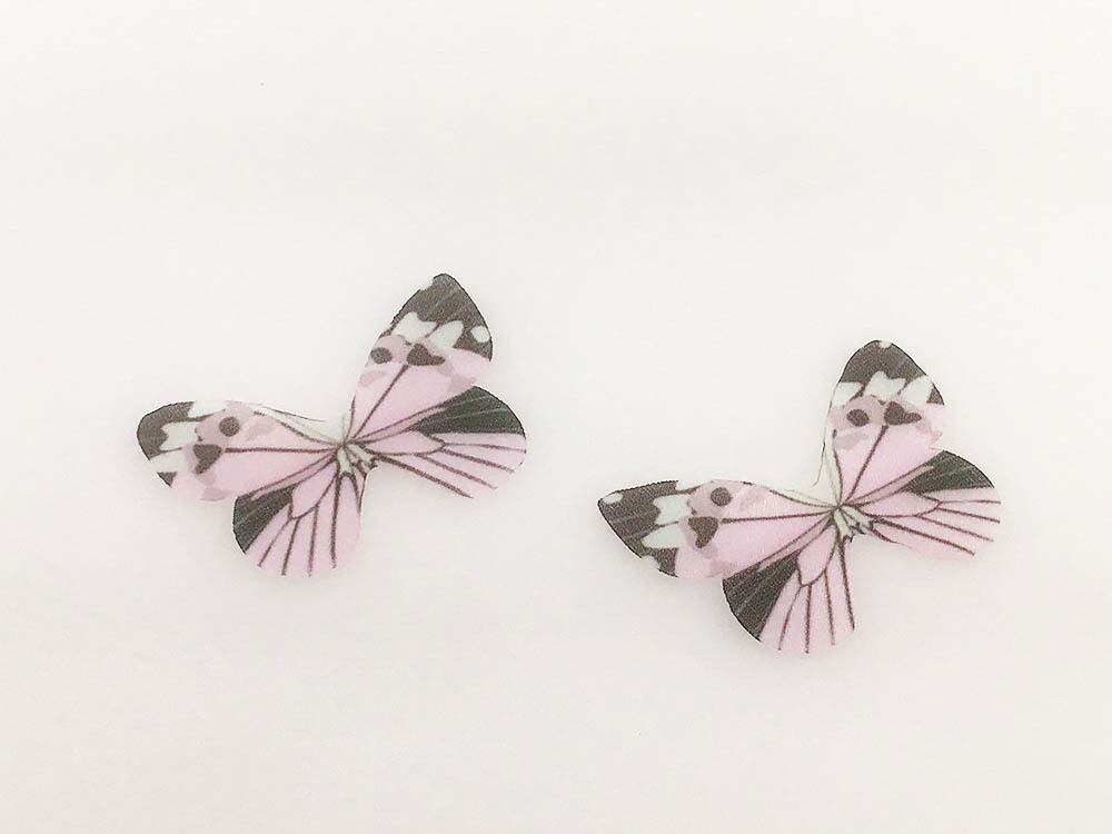送料無料 シフォン 蝶 パーツ ピンクパープル 模様多 50個 約40x30 ピアス イヤリング チャームAP1310