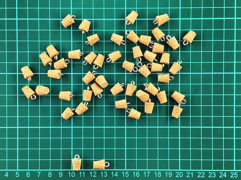 1個サイズ:コルク上部直径約9mm中部直径約8mm下部直径約7mm(下部がボトル差込口、差込口内径が約7mm~約8mmのガラスボトルへの装着でしたら深すぎず浅すぎずで装着出来ます。) 全長約10mm(カン含まず)カン内径約3mm (商品画像に簡易計測画像御座います、簡易ですので誤差は御座いますのでご了承下さい。)
