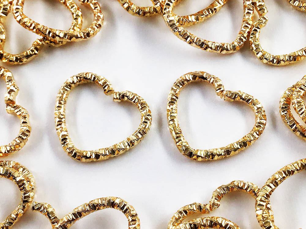 フレームパーツ ハート ゴールド 100個 切り口有り 枠 デザインカン キーホルダー金具 アクセサリーパーツ