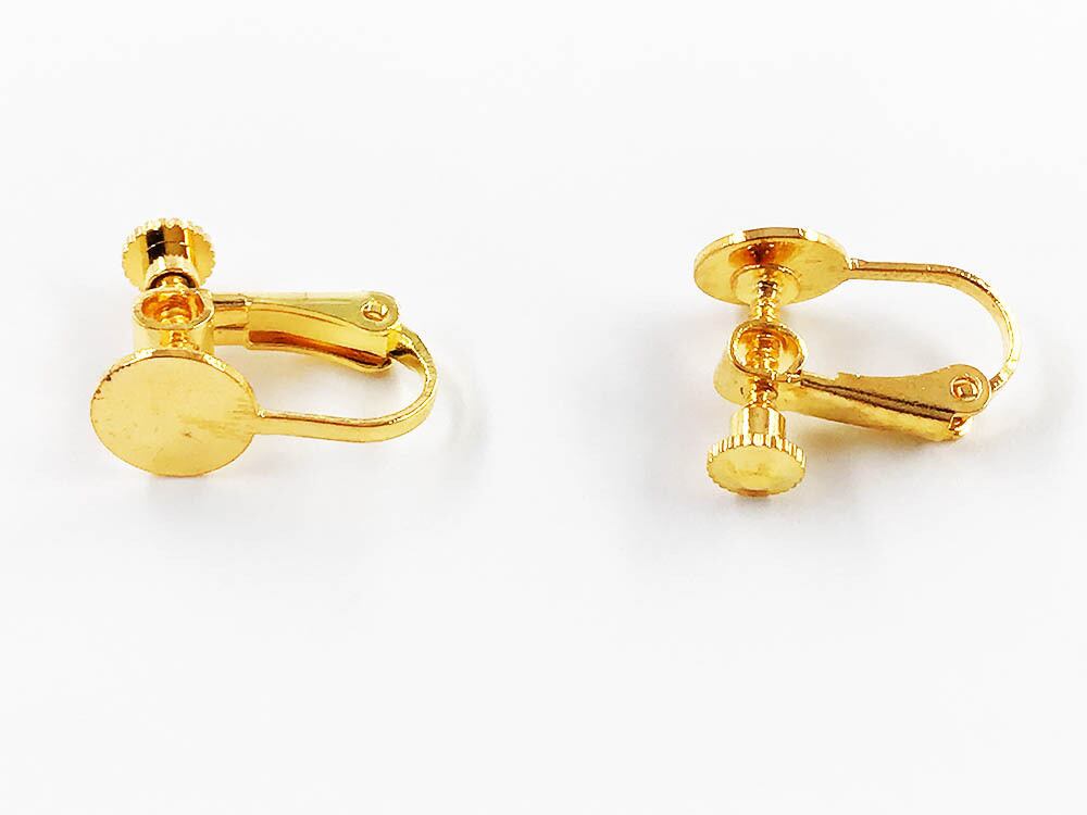 送料無料 イヤリング パーツ ネジバネ ゴールド 8mm台座 カン無 20個 アクセサリーパーツ AP1356