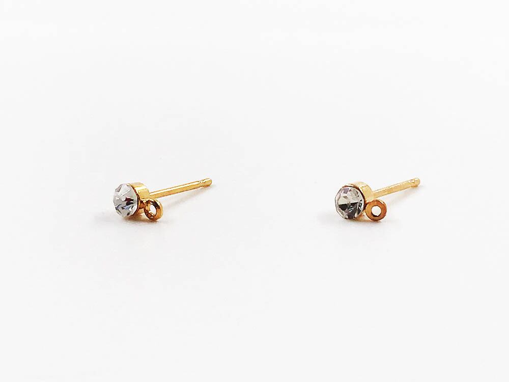 送料無料 ピアス パーツ 3mm 小さめ ラインストーンカン付き 40個 ゴールド KC金 アクセサリーパーツ ハンドメイドパーツ AP1395