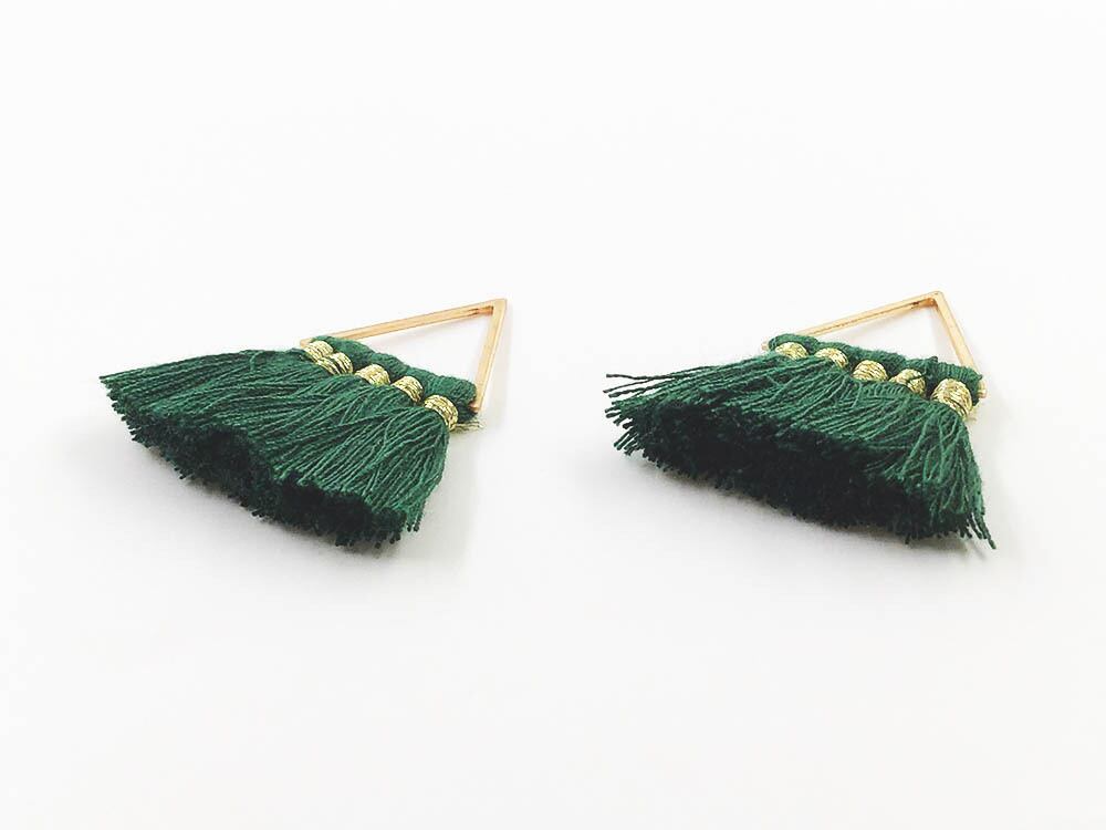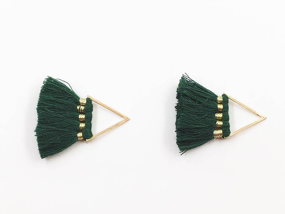 送料無料 タッセルチャーム 4連 グリーン 10個 フレームパーツ付き 三角 チャームパーツ アクセサリーパーツ タッセルパーツ AP1401