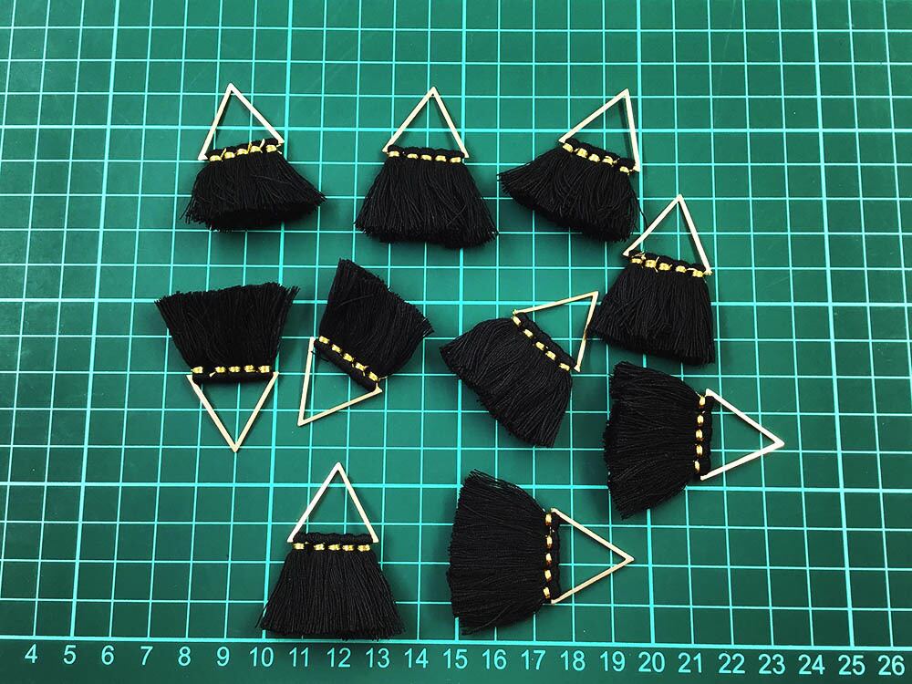 送料無料 タッセル チャーム 4連 ブラック 10個 フレームパーツ 付き チャームパーツ アクセサリーパーツ タッセルパーツ ハンドメイド AP1404