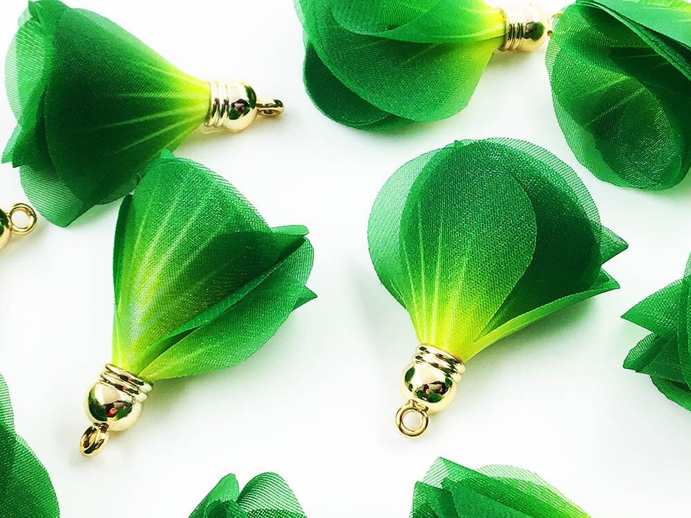 送料無料 フラワー タッセル グリーン 10個 全長約40mm ふわふわ感を抑えたい方用 タッセルパーツ チャームパーツ アクセサリーパーツ AP1435