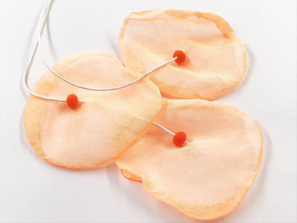 素材:花びら:ポリエステル、紐、ストーン部:ガラス キャップ部:金属
