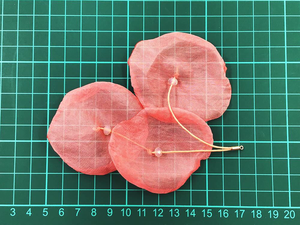 素材:花びら:ポリエステル、紐、ストーン部:ガラス キャップ部:金属