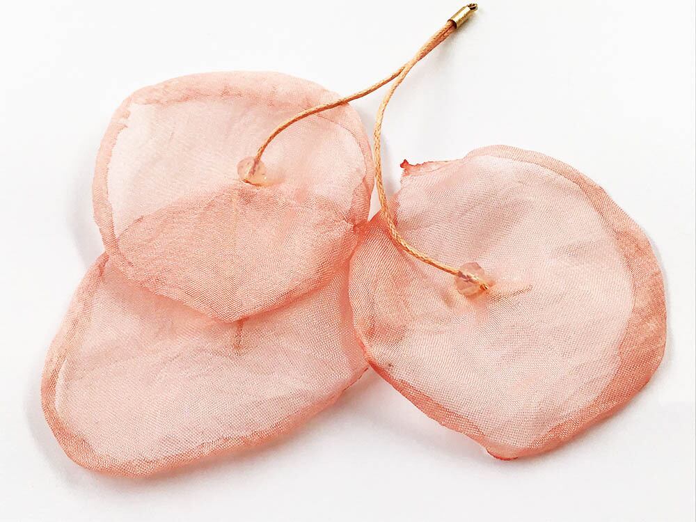素材:花びら:ポリエステル、紐、ストーン部:ガラス キャップ部:金属