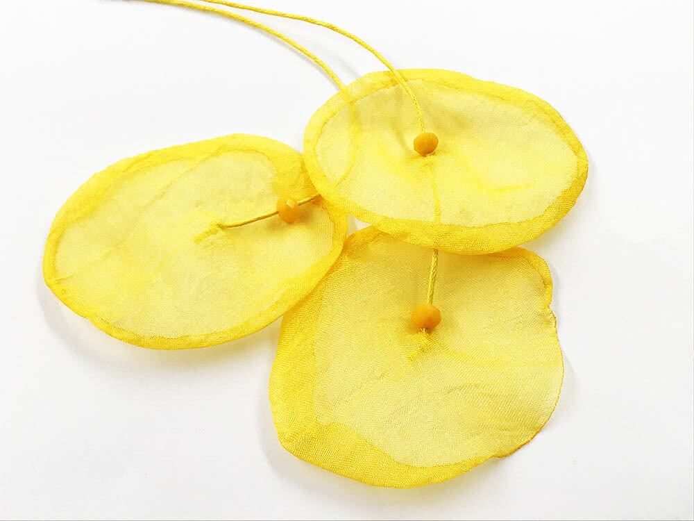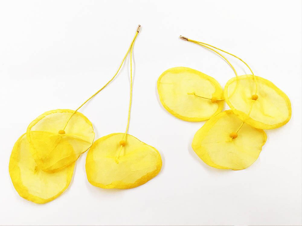 素材:花びら:ポリエステル、紐、ストーン部:ガラス キャップ部:金属