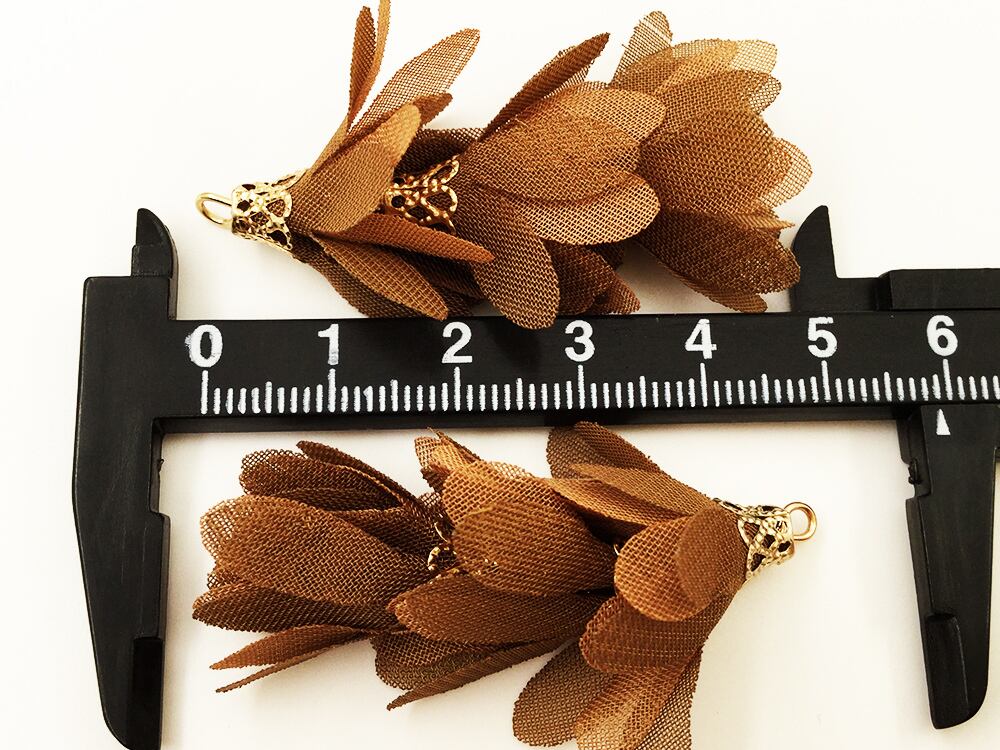 送料無料 フラワータッセル 3連ゆれ系 ダブルブラウン 全長約50mm 10個 チャームパーツ ロングタッセル タッセルパーツ アクセサリーパーツ AP1472