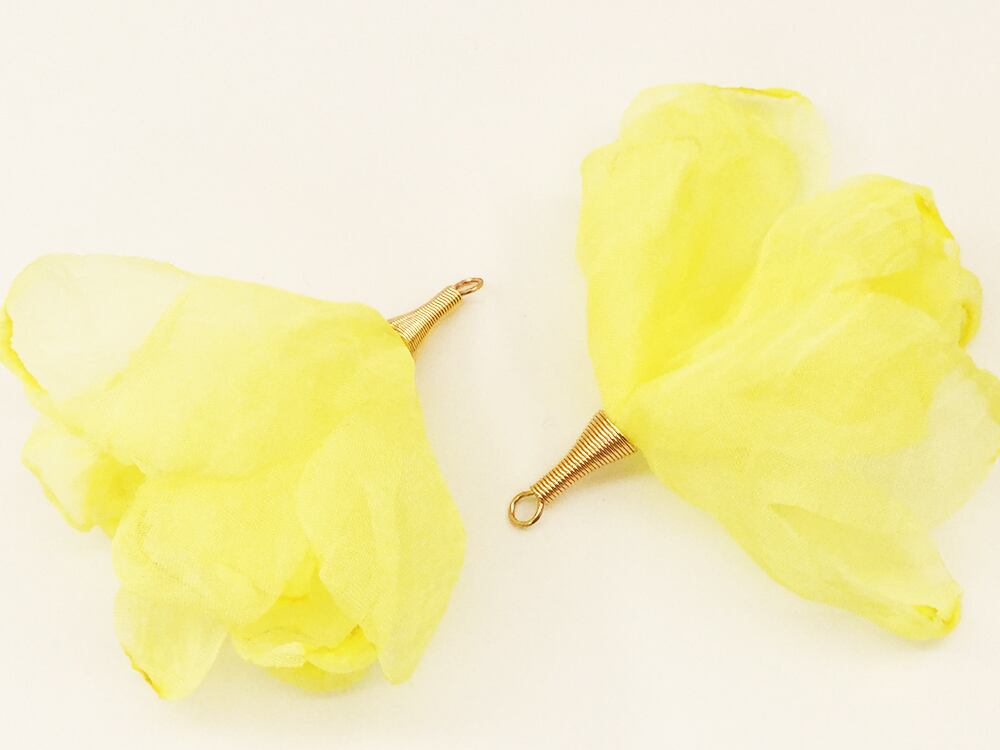商品名:チャーム フラワータッセル 炙り花びらゆらゆら調 10個 パステルイエロー タッセルパーツ チャームパーツ アクセサリーパーツ ハンドメイドパーツ